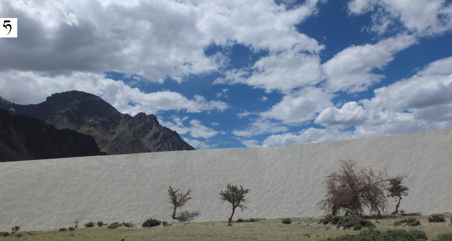 Wydmy w Dolinie Nubry między osadami Hundar i Diskit.