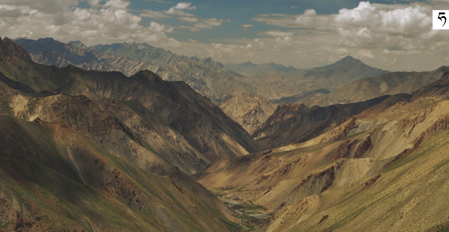 Morze gór poniżej rzadko odwiedzanej przełęczy Stakspi La (5290 m n.p.m.). Widok na podejście od strony osady Sumda Chun [sumda ćhun].