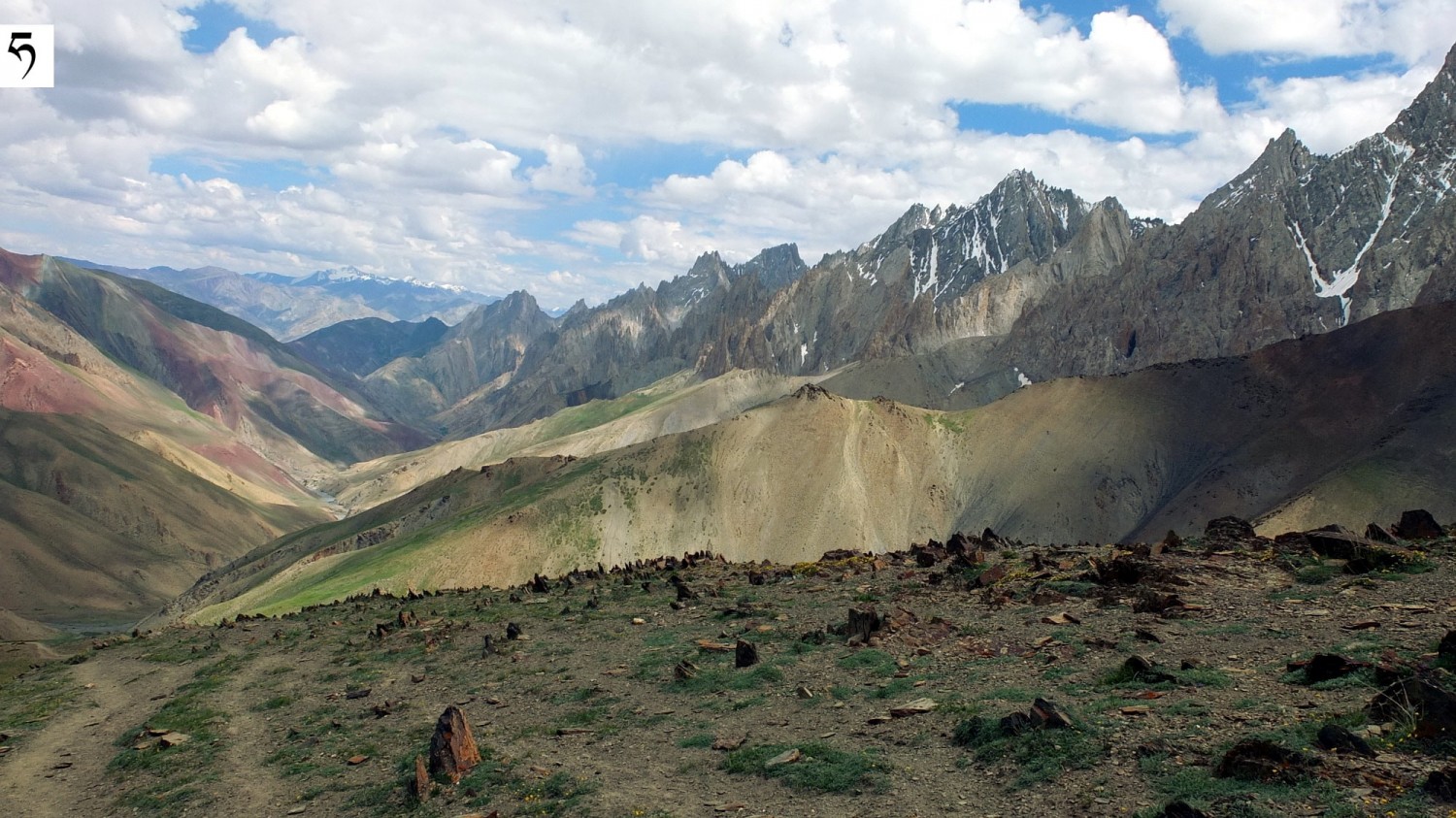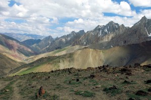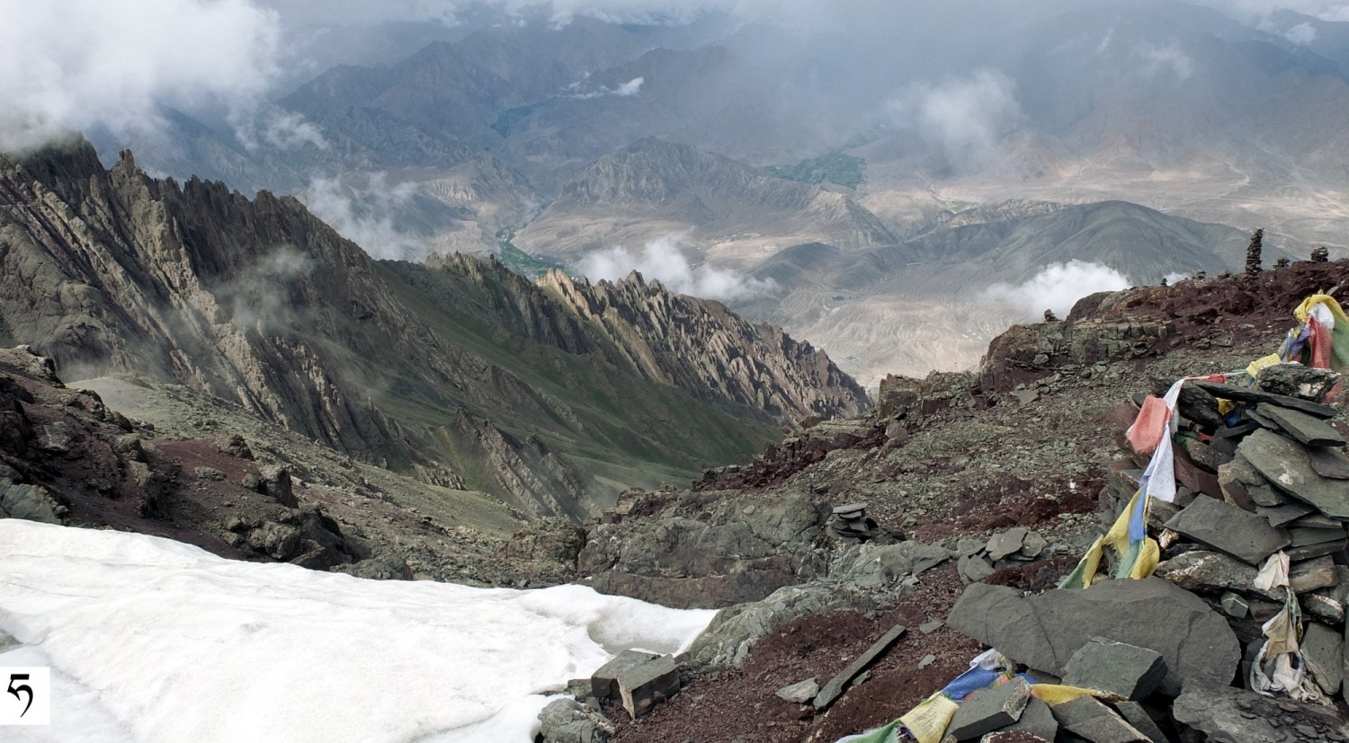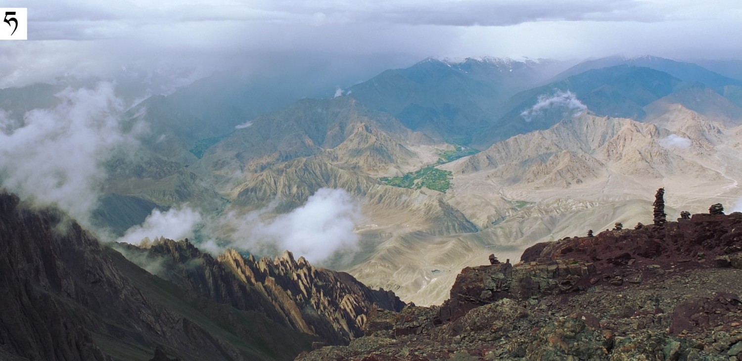 Przełęcz Stakspi La (5290 m n.p.m.). Widok na północ w kierunku doliny Indusu. Najbliższa miejscowość - Alchi [alczi] - 1900 m niżej.