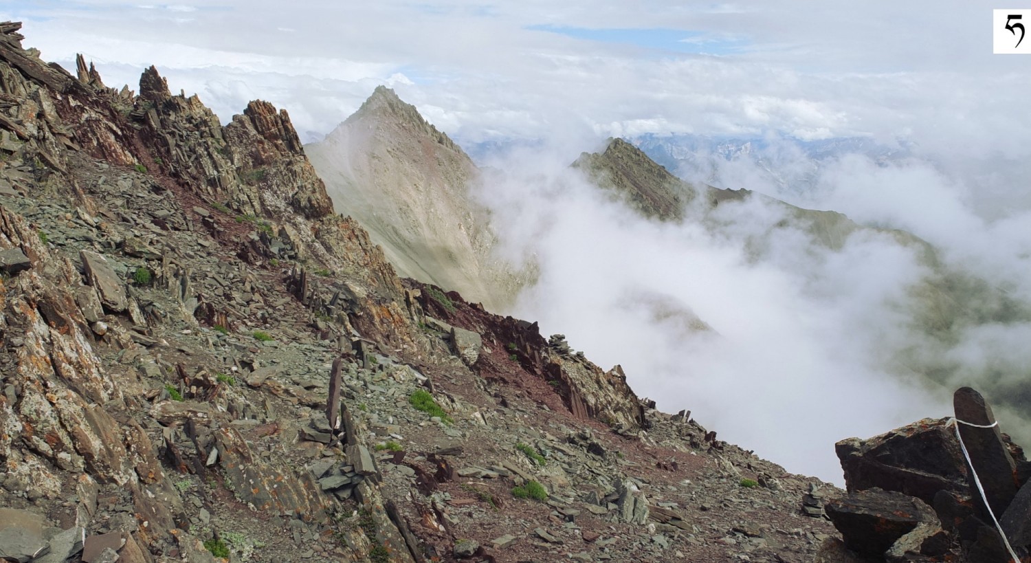 Widok z przełęczy Konzke La (4950 m n.p.m.) na południowy-wschód w dół doliny potoku Sumda Chu [sumda ćhu].