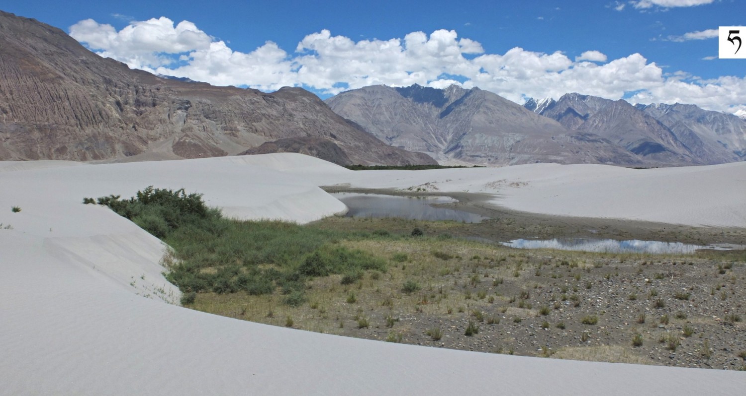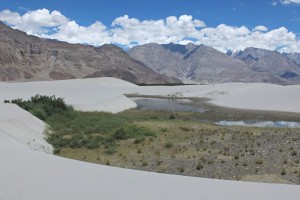Wydmy w Dolinie Nubry między osadami Hundar i Diskit.