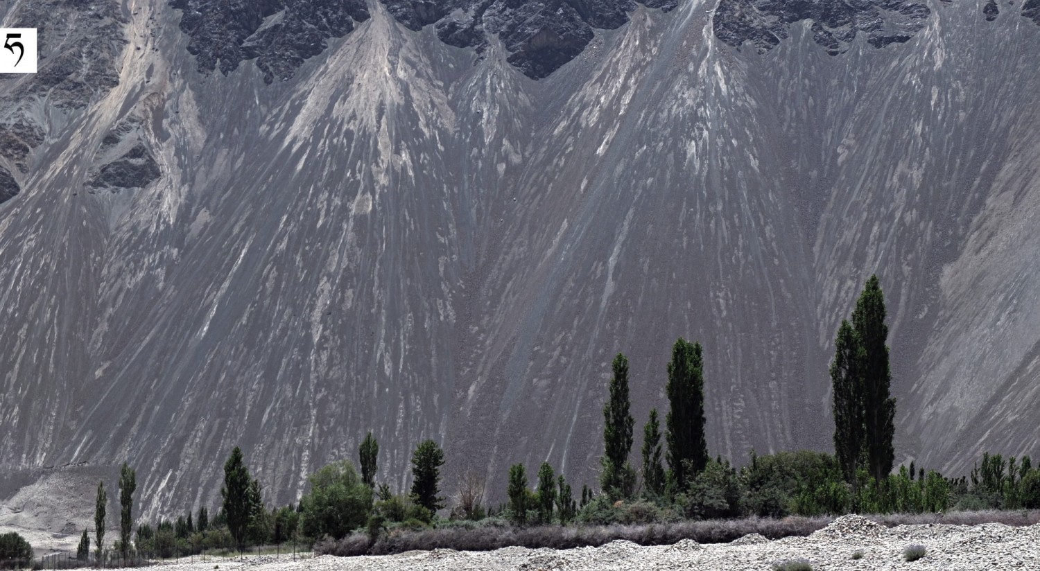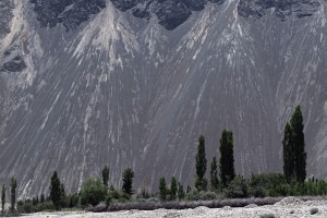 Wyjątkowo strome stożki piargowe w okolicach wsi Hundar w Dolinie Nubry.